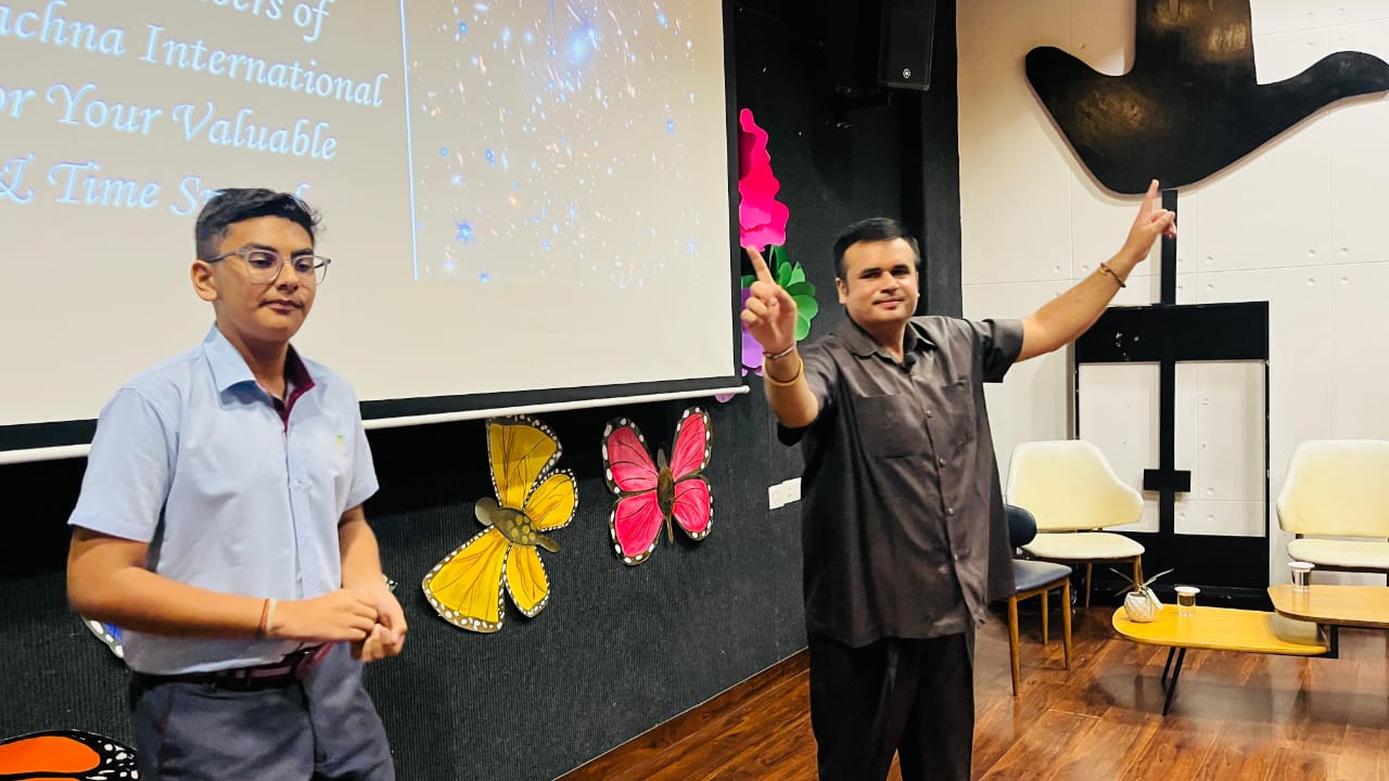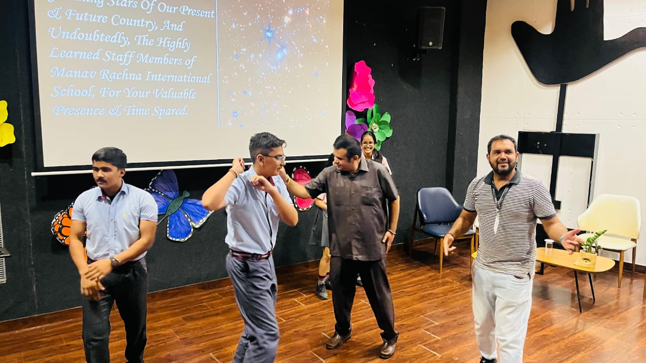 Motivating students for participation in a recreational activity during Motivational Talks Session with students of Grade 9th to 12th held at Manav Rachna International School, Mohali, Punjab.