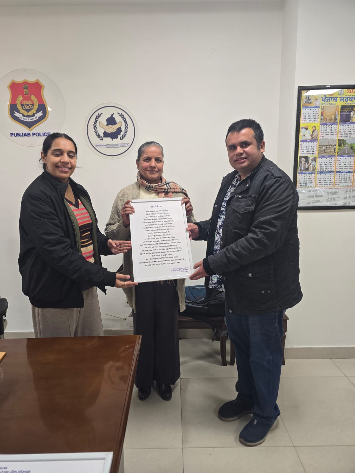 Mr. M S Walia presenting another frame of a punjabi poem to Ms. Gurpreet Deo, Special DGP,, Children & Women Development, Punjab. The poem is dedicated to the Daughter-In-Laws conveying the message of treating them like Daughters only.