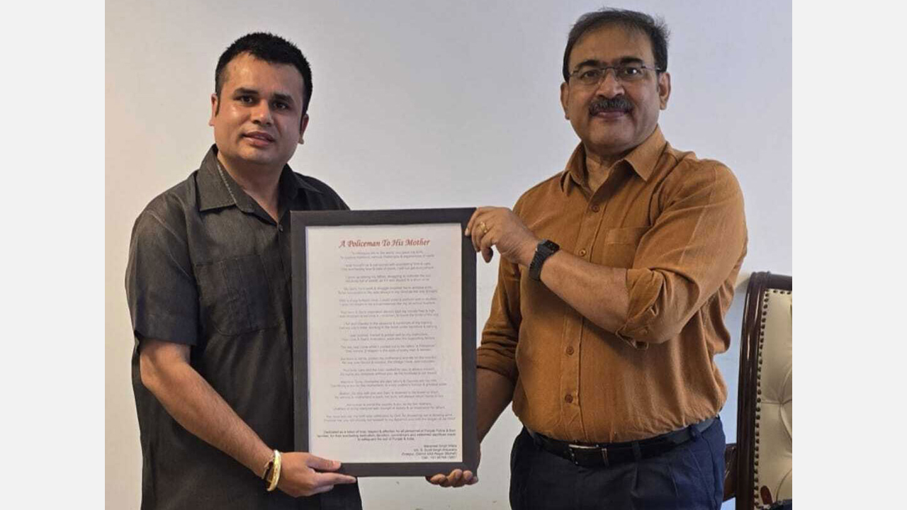 As a commended content writer, presented a frame of a poem titled as - "A Policeman To His Mother" to Sh. Arpit Shukla, Special DGP, Law & Order at Punjab Police Headquaters, Chandigarh.