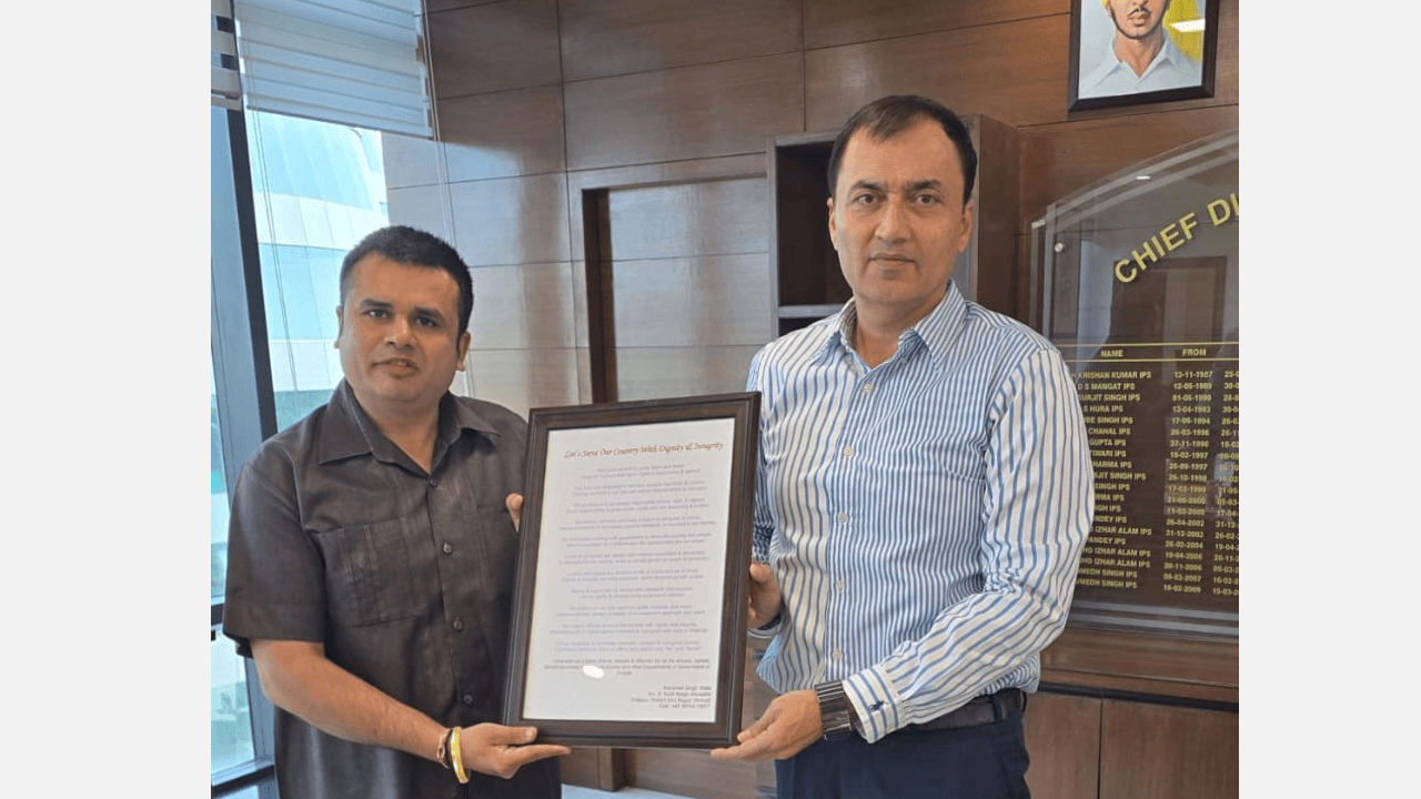 Presented a frame of a poem titled as - "Let's Serve Our Country With Dignity & Integrity" to Sh. S P S Parmar, Chief Director, Vigilance Bureau, Punjab during a meeting at Vigilance Bhawan, Mohali.