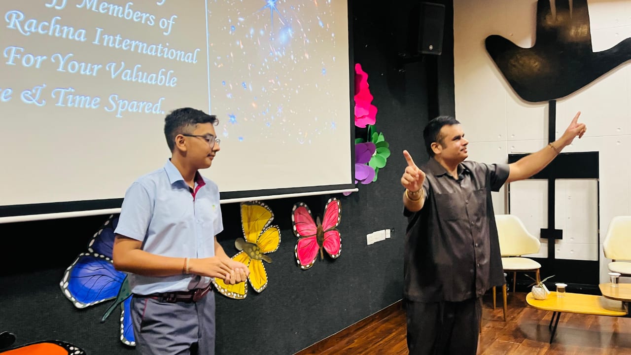 Engaging students in exchange of views during Motivational Talks Session with students of Grade 9th to 12th held at Manav Rachna International School, Mohali, Punjab.