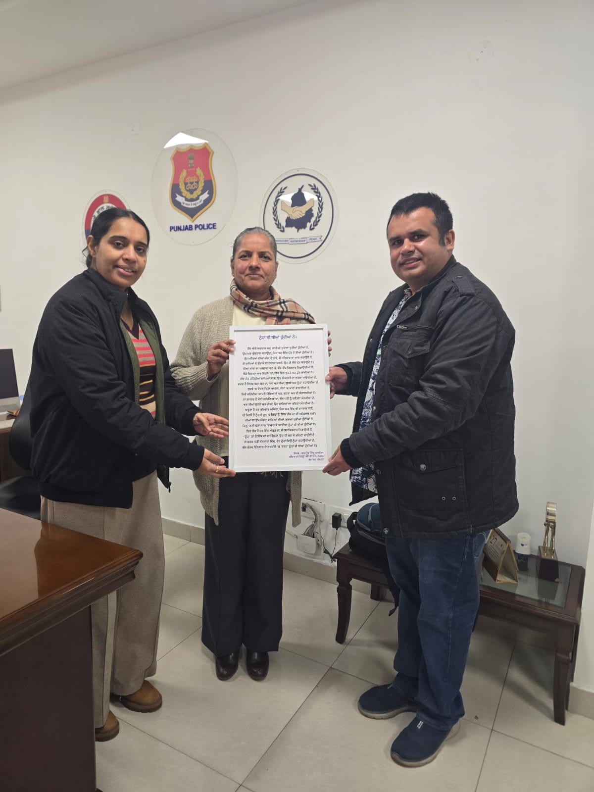 Mr. M S Walia presenting another frame of a punjabi poem to Ms. Gurpreet Deo, Special DGP,, Children & Women Development, Punjab. The poem is dedicated to the Daughter-In-Laws conveying the message of treating them like Daughters only.
